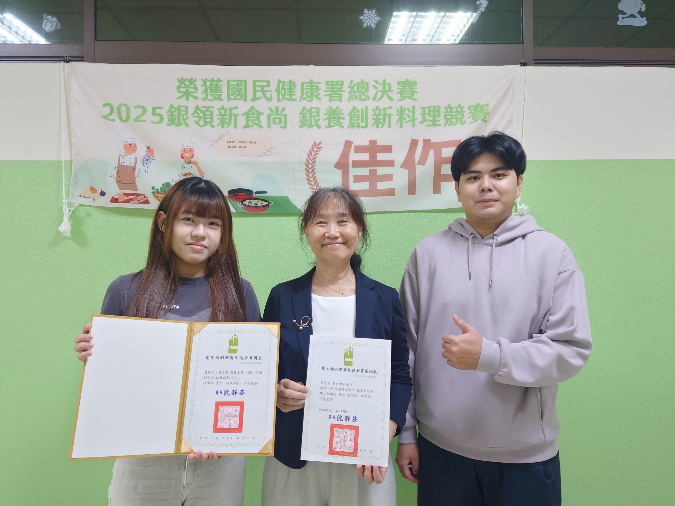 恭賀!本系營養三蕭楷蓉及周奕劭同學榮獲「2025銀領新食尚 銀養創新料理競賽」校園組全國總決賽佳作